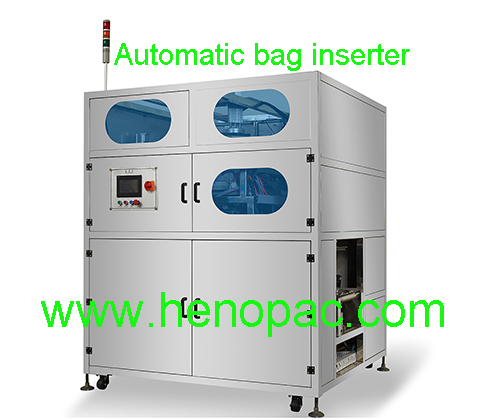The automatic bag inserter machine can automaticlly makes bag and inserts the bag from the tubular film roll into any type of the containers
